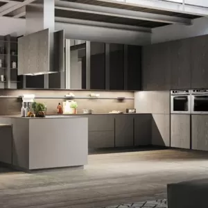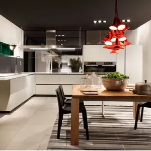 Gabinetes de cocina laminados personalizados de lujo con puertas de vidrio