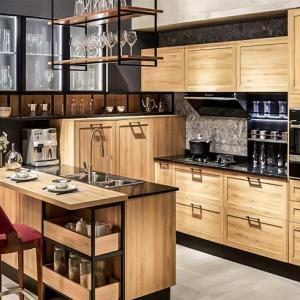 Lujosos gabinetes de cocina de chapa de madera de roble de gama alta