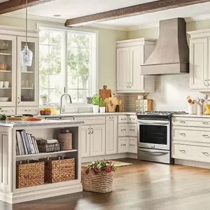 Gabinetes de cocina en madera blanca de diseño rústico estilo europeo