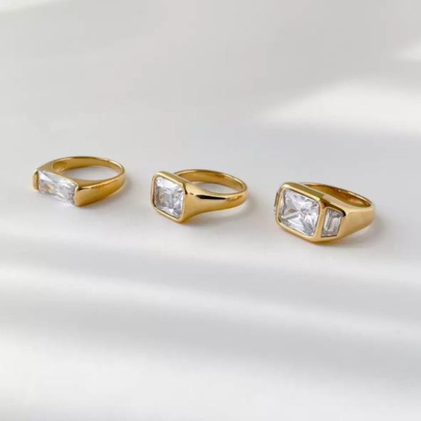 Tipo producto Joyería Tipo Joya Anillo Composición Acero Inoxidable Parilti SKU ps-ani062 Anillo Retro cuadrado con Circonia para dama, chapado en oro 18k Solicito presupuesto