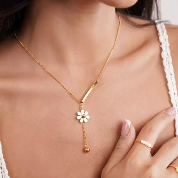 Tipo producto Joyería Tipo Joya Collar Composición Acero Inoxidable Parilti SKU ps-coll109 Collar diseño Fantasia, Colgante en forma de Flor con borla chapada en Oro, Acero Inoxidable Solicito presupuesto