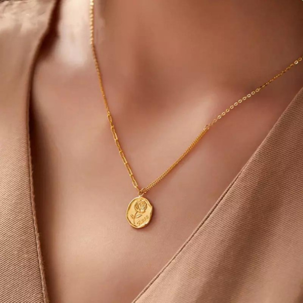 Tipo producto Joyería Tipo Joya Collar Composición Acero Inoxidable Parilti SKU ps-coll114 Collar diseño Simple con Colgante medalla, chapada en Oro Acero Inoxidable Solicito presupuesto