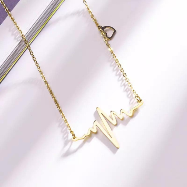 Tipo producto Joyería Tipo Joya Collar Composición Acero Inoxidable Parilti SKU ps-coll160 Elegante Collar Electrocardiograma Acero Titanio chapado en Oro Solicito presupuesto