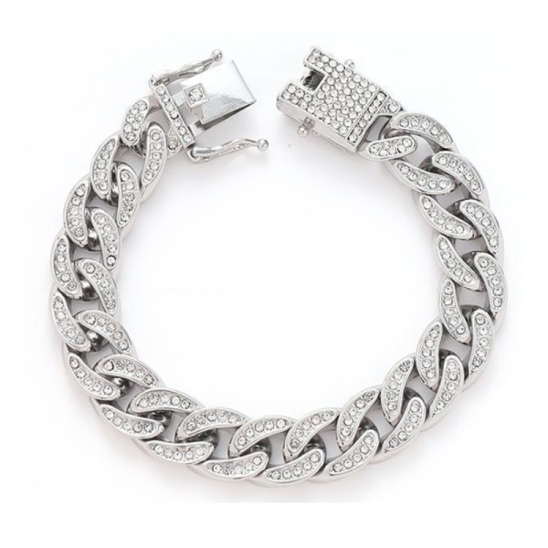 Tipo producto Joyería Tipo Joya Cadena Composición Aleación y Pedrería Parilti SKU ps-cad045 Juego de Cadena y Pulsera de Aleación Cubana embutida de Diamantes Imitacion Completo Hip Hop Solicito presupuesto