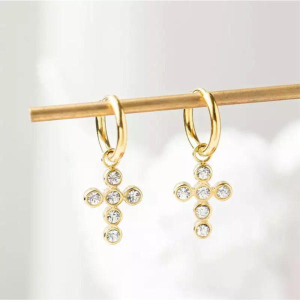 Tipo producto Joyería Tipo Joya Pendiente Composición Acero Inoxidable Parilti SKU ps-pend124 Pendientes de aro en acero circular, diseño Retro, chapado en oro embutido con pedreria Solicito presupuesto