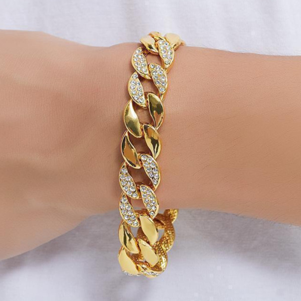 Tipo producto Joyería Tipo Joya Cadena Composición Aleación y Pedrería Parilti SKU ps-cad005 Pulsera de Eslabones Cubanos con diamantes de imitación, joyería de moda de 15mm, estilo Hip Hop Solicito presupuesto