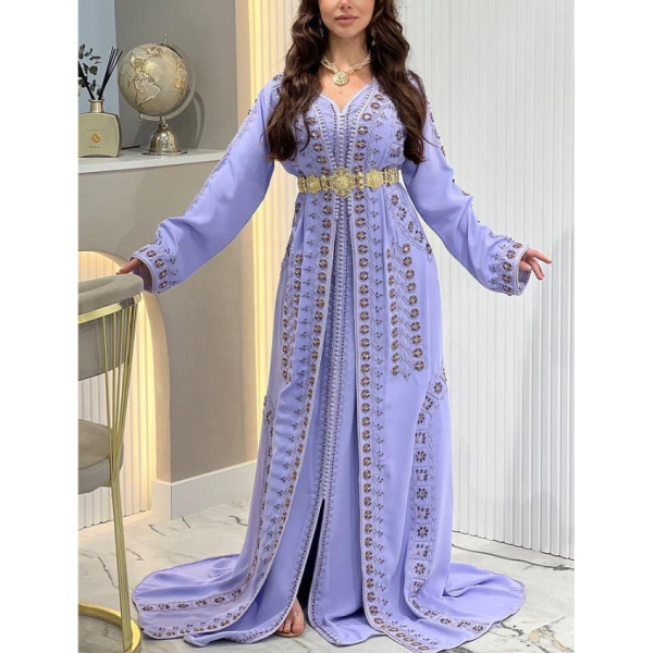 Tipo producto Ropa de Vestir Categoría Ropa de Vestir Vestidos Summer ONE SKU ps-mujarab009 Vestido caftán estilo árabe color violeta con cinturón para mujer Abaya de Dubái moda colorida S -M-L-XL-XXL Solicito presupuesto