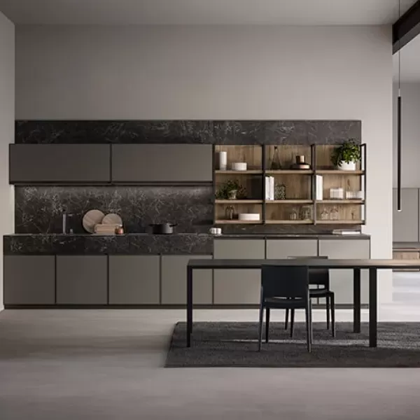 Gabinetes de cocina de laca gris con acabado mate moderno