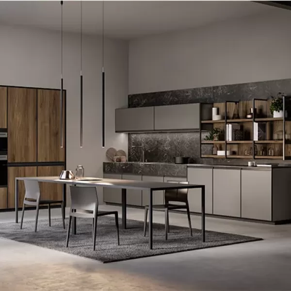 - Puerta: MDF de 18 mm acabado lacado a dos caras para todo el conjunto de cocina.